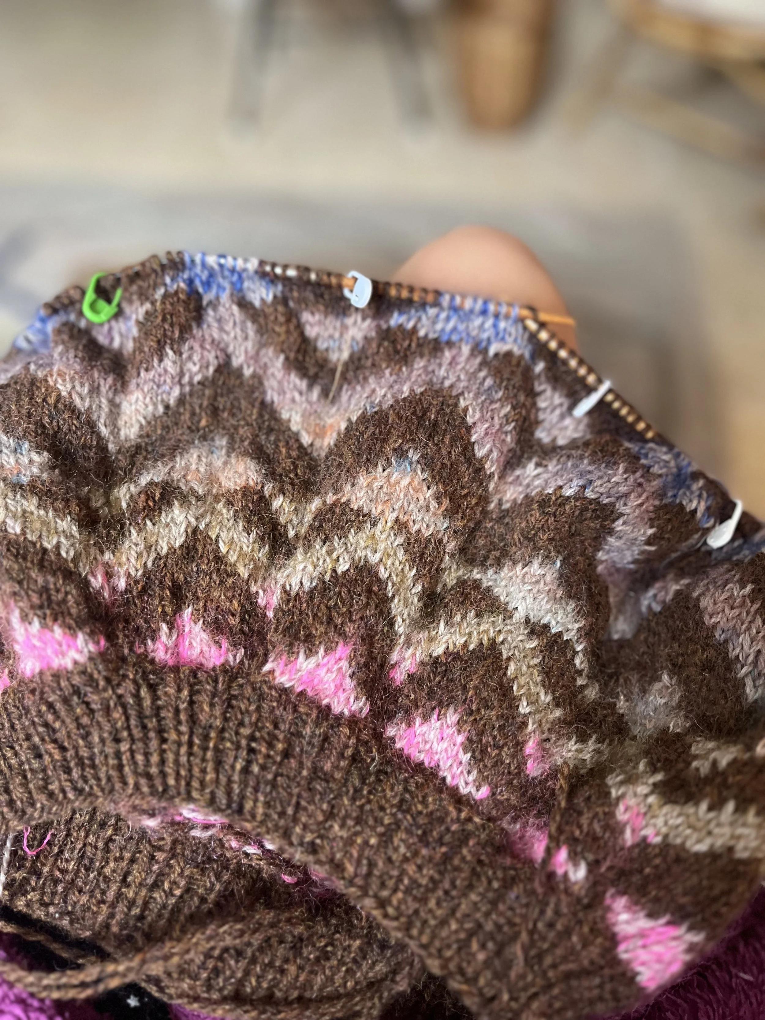 in Noord Frankrijk. Iedere donderdag van 10h-12h werkt u aan een vrij te kiezen project, iedereen doet iets anders. Het comfortabele atelier, een vast moment in de week, de begeleiding en de groep stimuleert om je project tot een goed einde te brengen én natuurlijk te genieten van je werk. Ter plaatse zijn patronen, breinaalden en wol voor kleine projecten te koop.